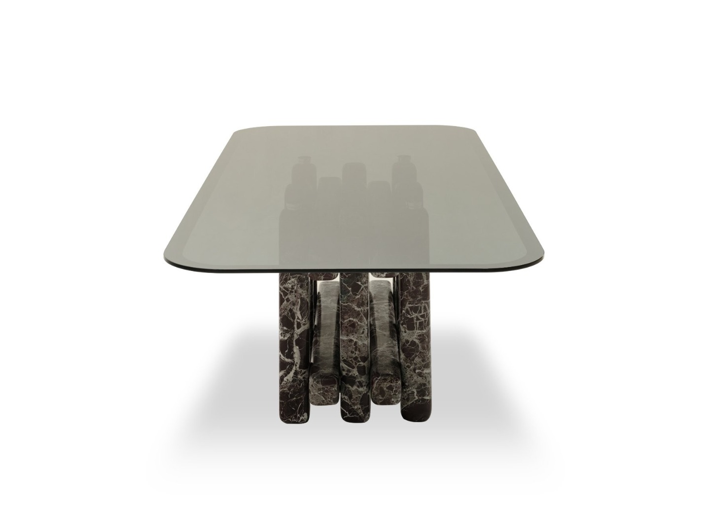 Şeffaf cam tablası ve mermer ayaklarıyla tasarlanan Jetee Masa, suyun üzerinde uzanan bir iskeleyi andıran zarif bir siluet sunar. Camın berraklığı ile mermerin sağlamlığı arasında kurduğu denge, bulunduğu mekâna çağdaş bir karakter kazandırırken; dingin ve huzurlu bir atmosfer yaratır.