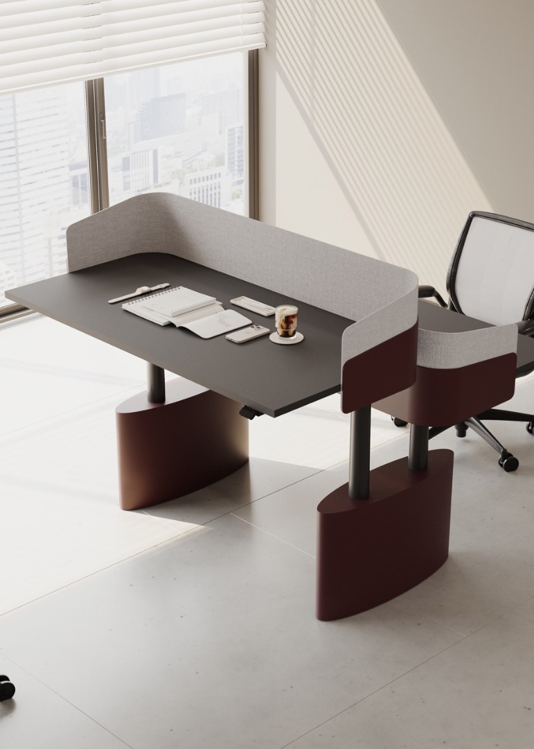 Ovia Workstation, yoğun ekip çalışmalarının ritmine uyum sağlayan, fonksiyonel zekâyı estetik dengeyle buluşturan bir çalışma istasyonu sistemidir. Oval ayak formu, mekânda sert sınırlar oluşturmadan akışkan bir yerleşim sağlar; kullanıcılar arasında doğal bir etkileşim alanı yaratır.
