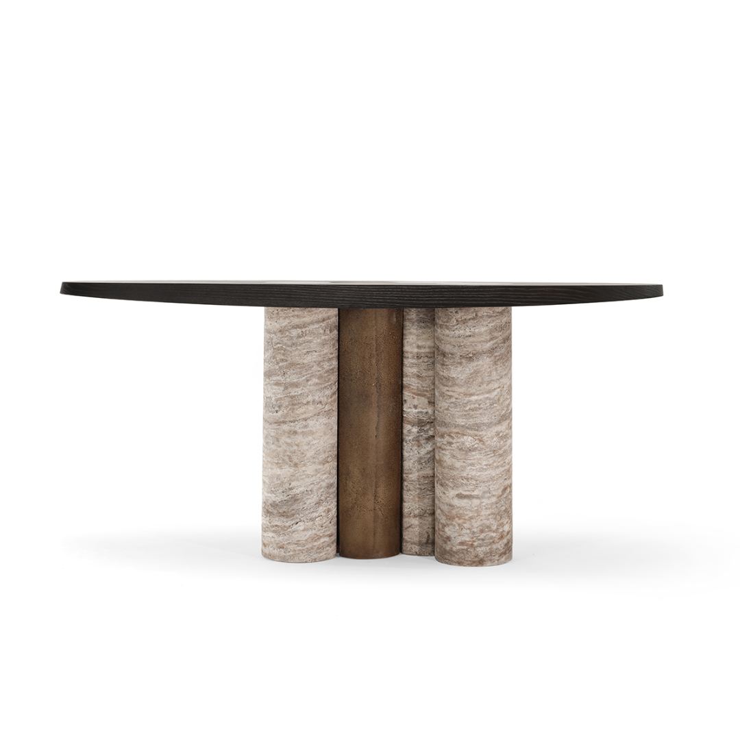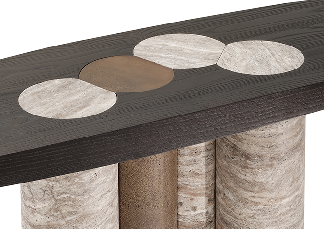 The Ross Console is a seamless combination of refined design and superior craftsmanship. Skillfully crafted using premium-quality chestnut massive wood, the console boasts a modern and sophisticated black finish. Its robust body offers ample storage capacity for all your living room or hallway necessities. The console’s brass and travertine feet are unique and add an unparalleled touch of elegance and style to your interior design. The exquisite combination of materials creates a striking contrast with the rich chestnut wood, drawing the eye to its visual appeal.