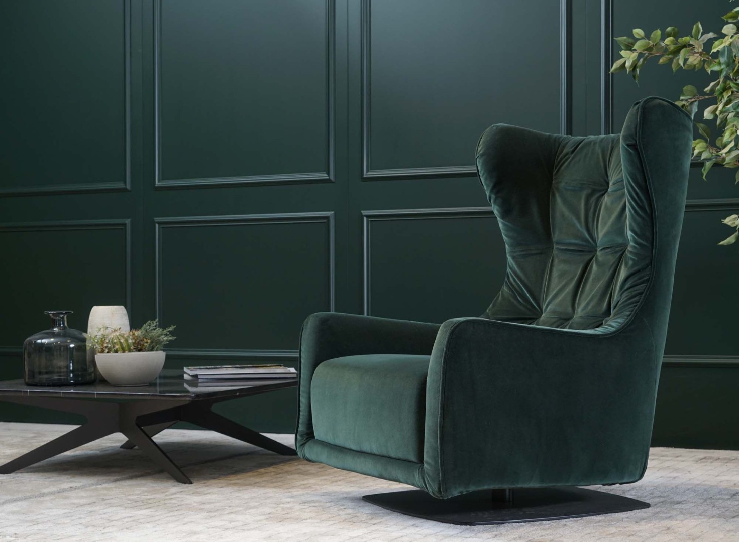 Tanka Berjer, arka tarafını kaplayan sert deri düzlem ve onu birleştiren bir kordonla vurgulanan, duyulara hitap eden kadife ile döşenmiştir. Mekanizması sayesinde dönebilir ve kalktığınızda eski pozisyonuna geri döner.
