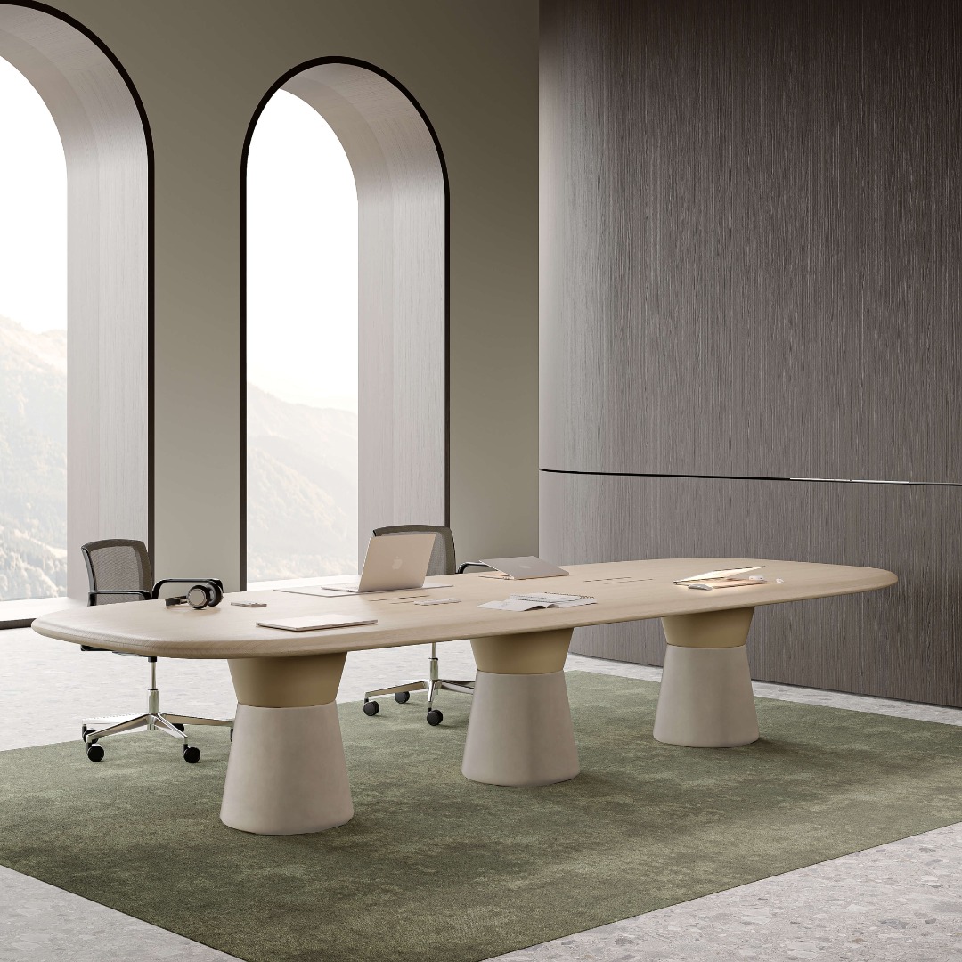 Ugo, uyarlanabilirliğinin temelini oluşturan ikonik bacaklarıyla karakterize edilen kendine özgü ve çok yönlü bir tasarıma sahiptir. Bu bacaklar, tabanda yuvarlak bir kare olarak başlayıp kademeli olarak tepeye doğru tamamen yuvarlaklaşarak dinamik bir görsel çekicilik katan benzersiz bir şekil geçişi sergiliyor. Çeşitli masa üstü tasarımlarıyla birleştirildiğinde, çeşitli ortamlara ve ihtiyaçlara hitap eden sehpalara, konferans masalarına veya bar masalarına dönüşebilirler.